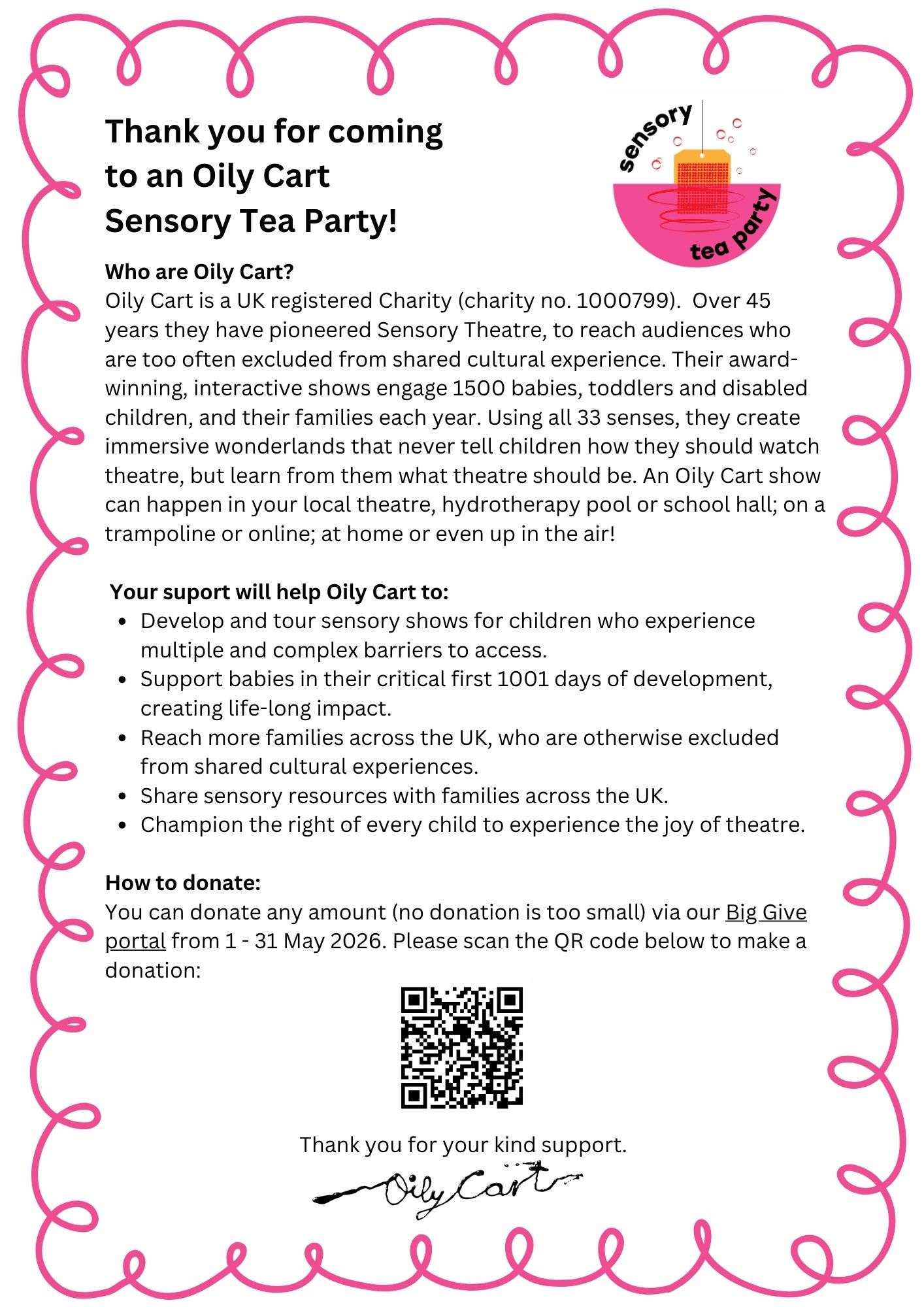 Can’t host or attend a Sensory Tea Party? No problem! There are lots of other ways you can support Oily Cart’s work: