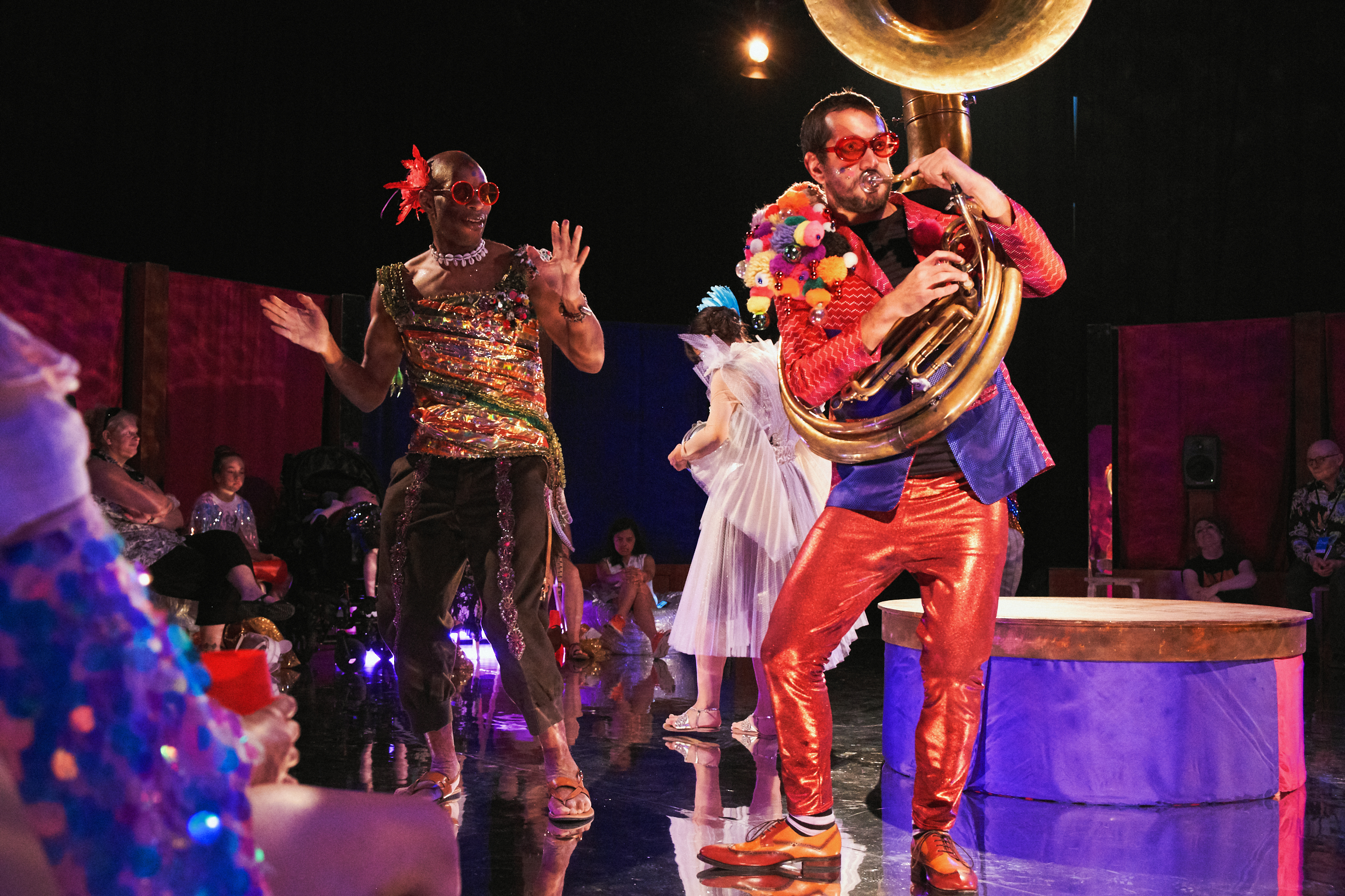 At the heart of our show Jamboree is the mythical travelling band who collect tunes and rhythms from those who rarely get listened to. The music was originally inspired by improvisations between professional musicians and young musicians, many of whom do not communicate through verbal language. Since then, it has gone on its own journey and is still evolving.
